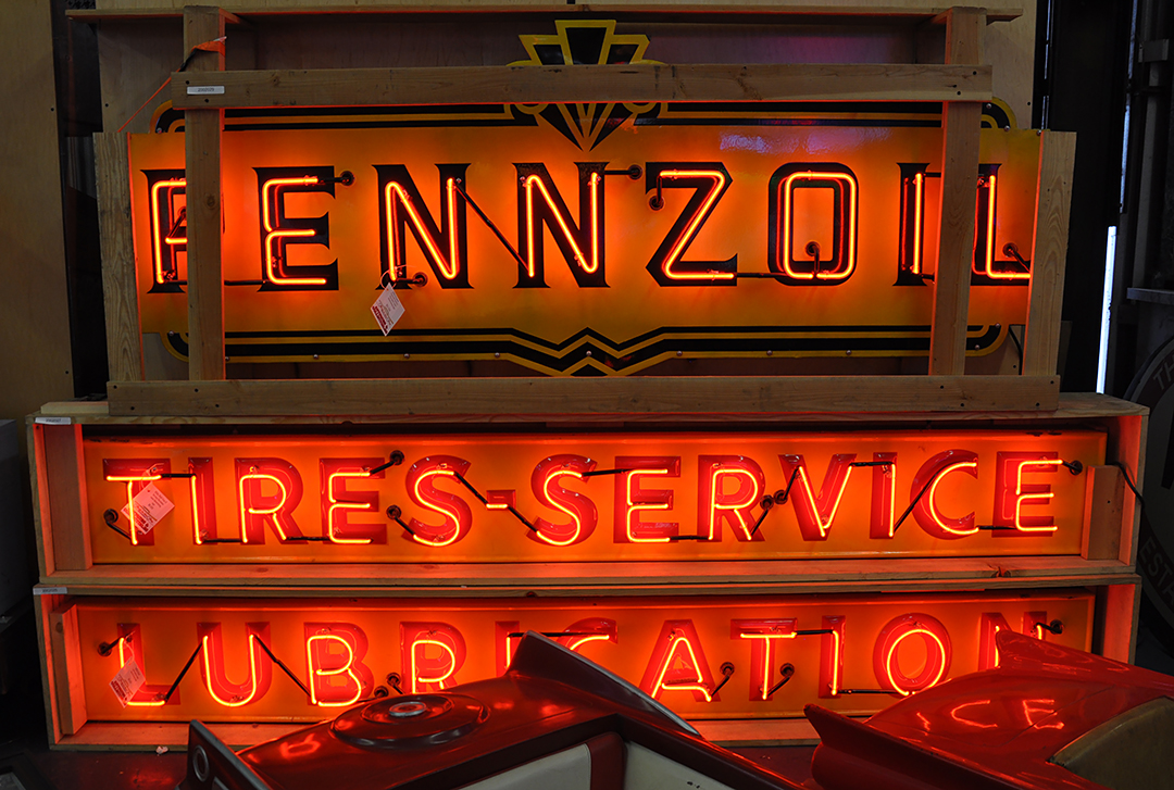 This fancy Pennzoil sign is selling for $6,295. I don’t see the two signs below it listed at the website: