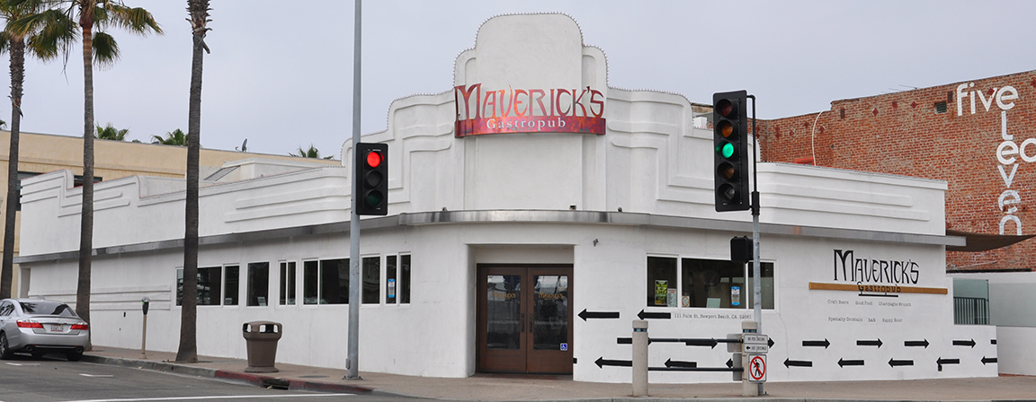 By 2013, the building was boarded up and vulnerable looking. Then, last year, it was put to use as Maverick’s Gastropub. Sorry to see the tile, block glass, and porthole windows on the doors are gone. But better than a new CVS drug store or something, right?