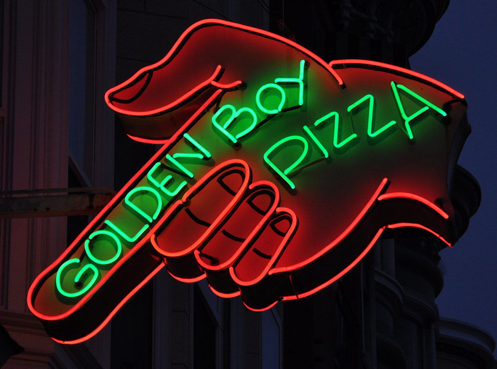 I know this sign in S.F. is new since Golden Boy Pizza opened in 1978: