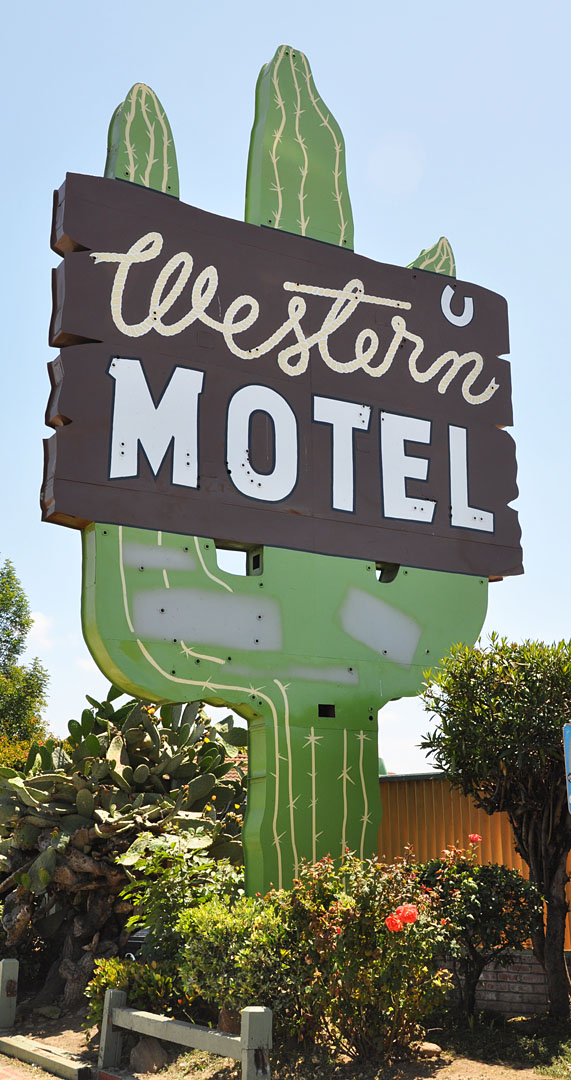 Some not so good news from Santa Clara. About a month ago, the Western Motel sign was repainted and the neon removed. The text at the bottom has changed and the simulated wood has far less detail now. Here’s my photo from last August: