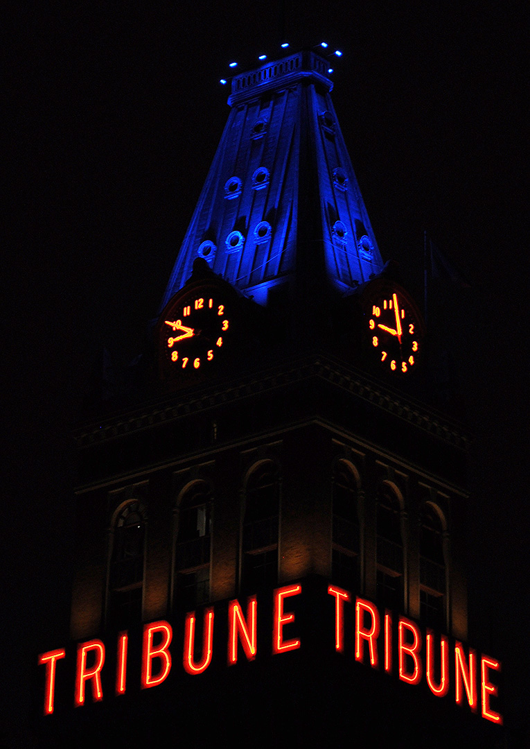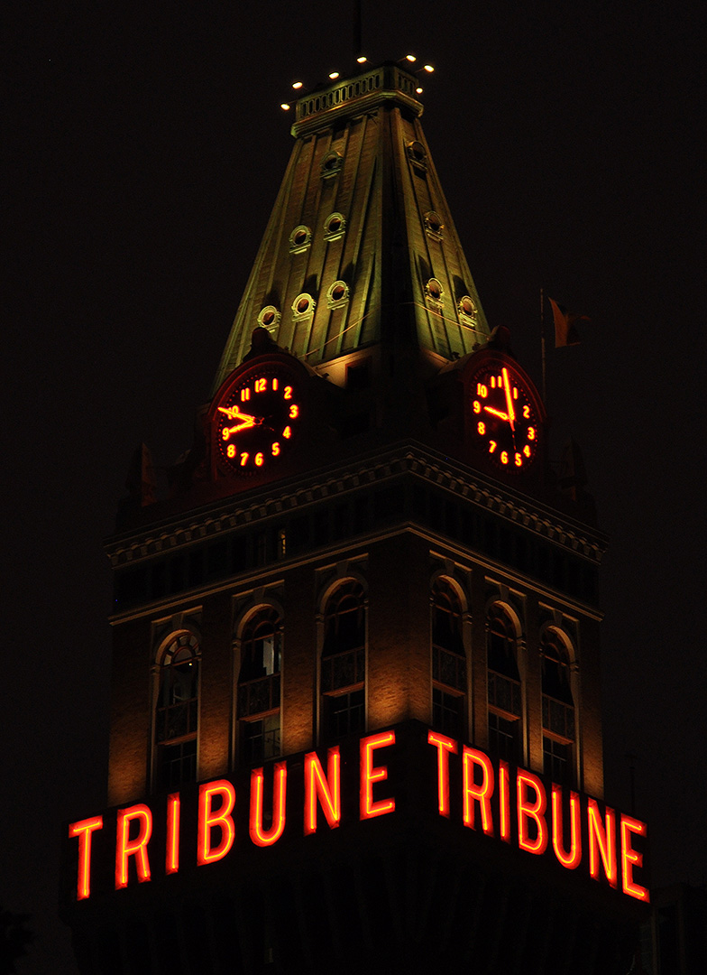 The Tribune Tower in Oakland is very pretty at night: