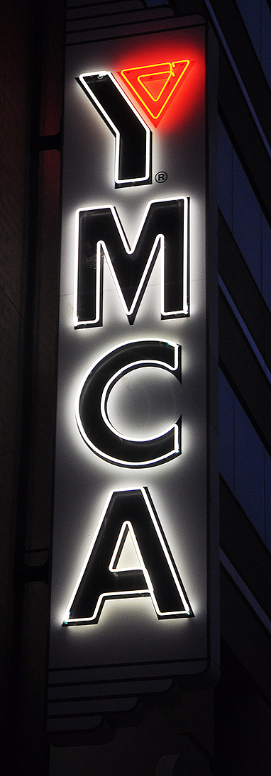 I don’t know if this YMCA sign in San Francisco is the “real deal” (a well-maintained vintage sign), a replica, or retro (new made to look old). Here’s a day shot if you’d like to form your own opinion: