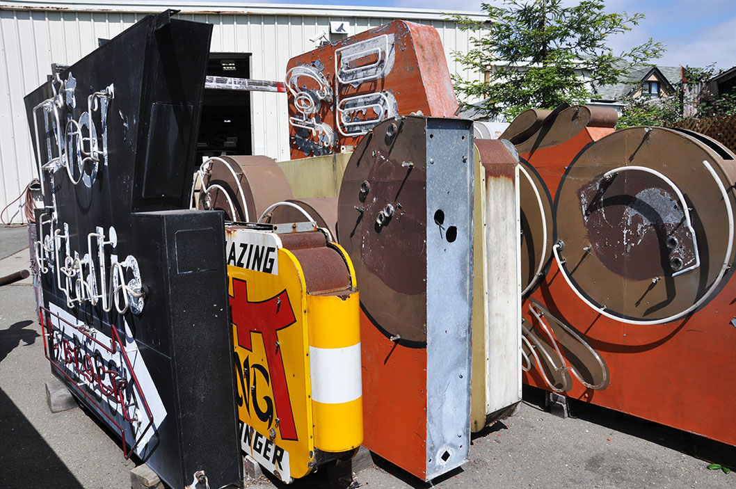 I also got to meet Jim Rizzo at Neon Works in Emeryville who has a nice collection of neon signs in his shop. I think all of the signs are from San Francisco. He’s never actively pursued the signs. They were just donated to him in exchange for removing them. Here’s a little article about Jim: