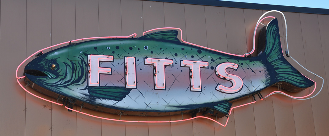 This one at Fitts Seafoods has me confused. I assumed it was a modern sign but the sides of the “can” look old (cobwebs & rust). So, I’m assuming this was just repainted & refurbished at some point: