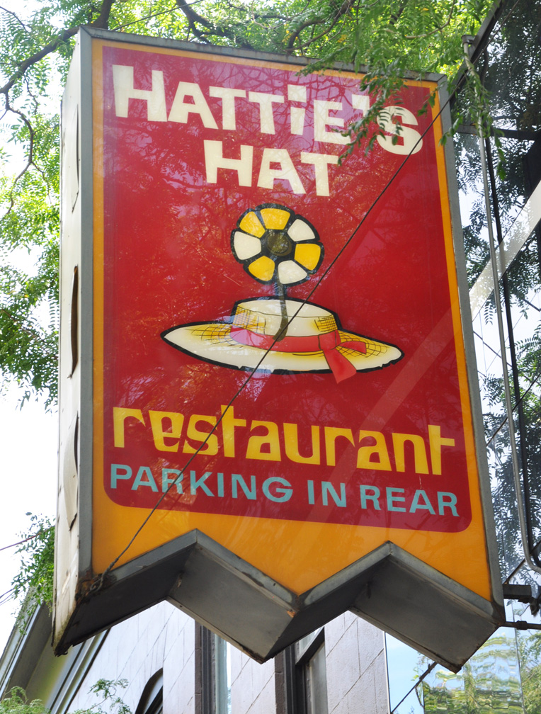 Hattie’s Hat has been around since 1904. This sign is obviously from much later — 1960s?