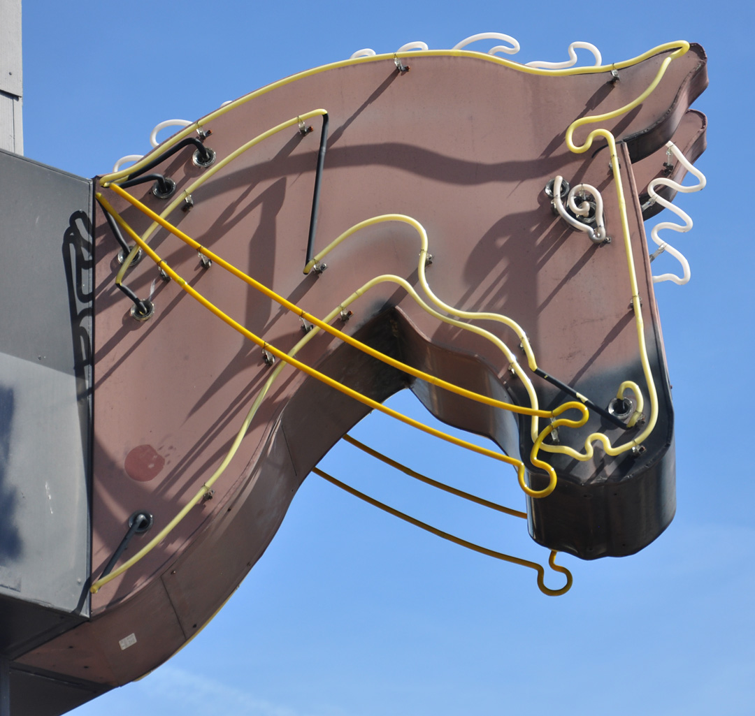 A modern sign, but awfully nice, at the 2 Bit Saloon which closed last year. Hopefully, the place will reopen or at least the sign will stay: