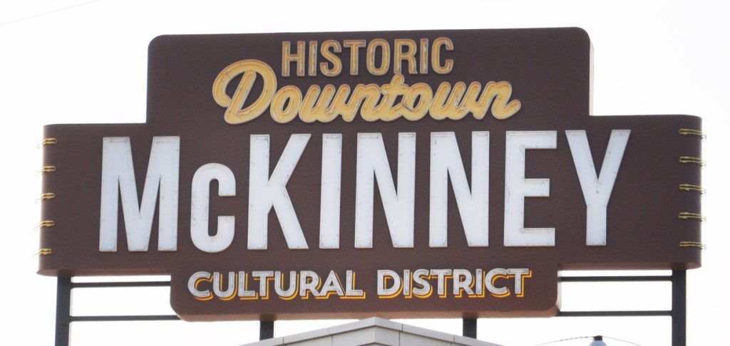 This rooftop sign in McKinney was taken at the end of the day where I had to shoot directly into the sun and then Photoshop the heck out of the photo to make it decent-ish. This sign is brand new in a vintage style.