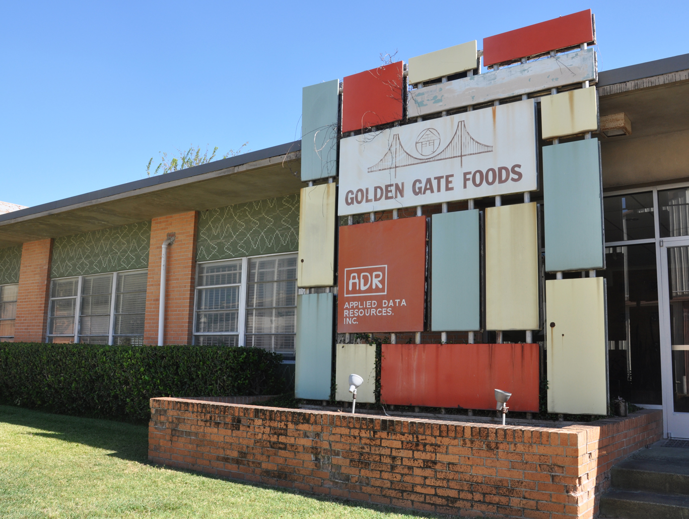 Love the Mondian-esque sign, right? But also note the swirly, crazy tile on the building: