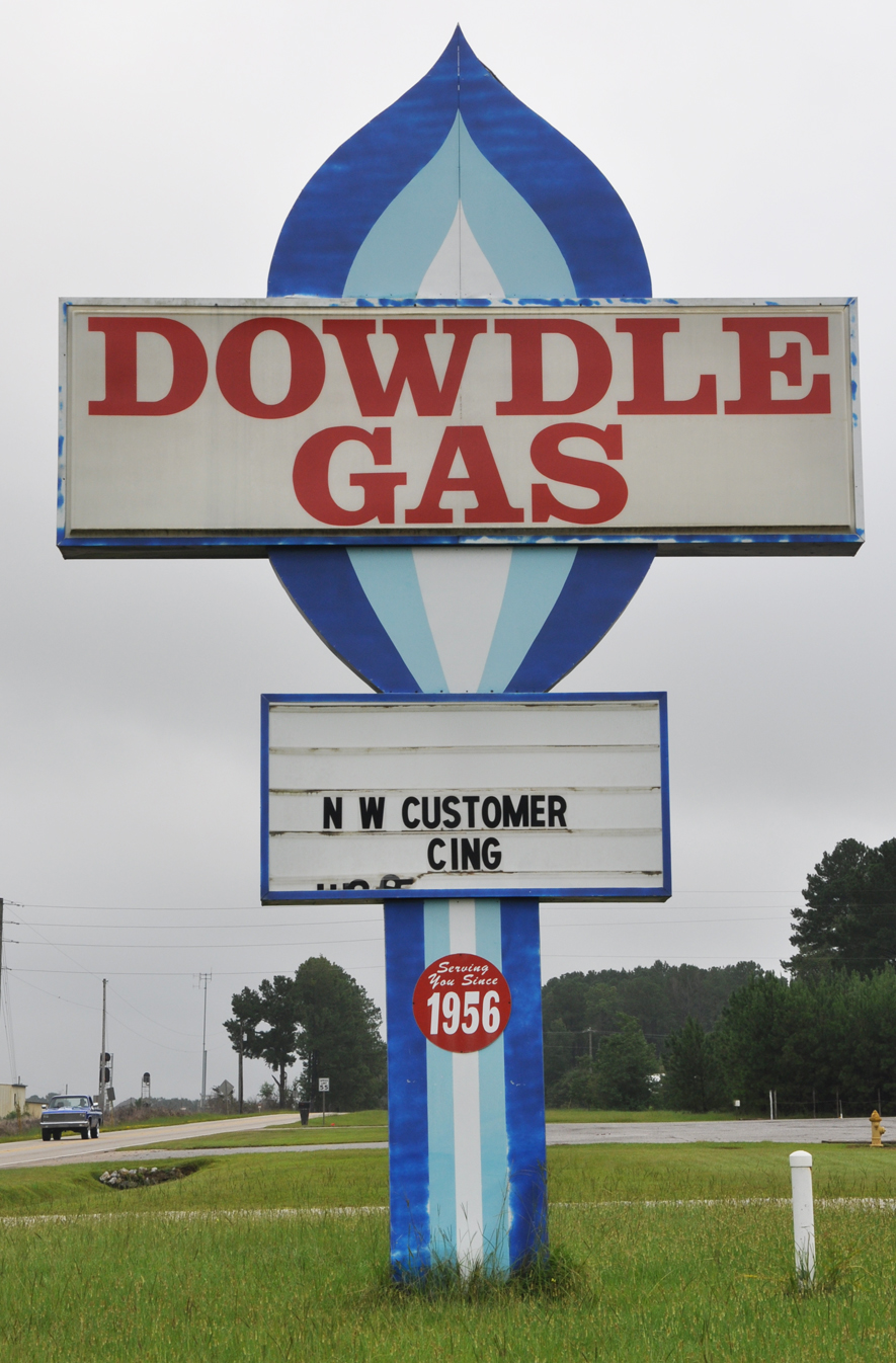 I shot a couple of Dowdle Gas signs — you’ll how dreary my situation was. Anyway, among my passions is signs with depictions of flames. The article that I wrote about them for the SCA Journal (Society for Commercial Archeology) is at the printers but I also have a page here with lots of other signs: