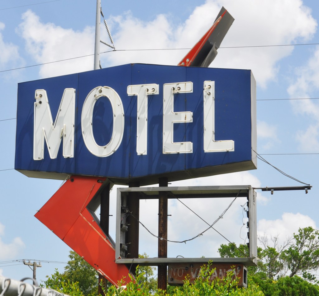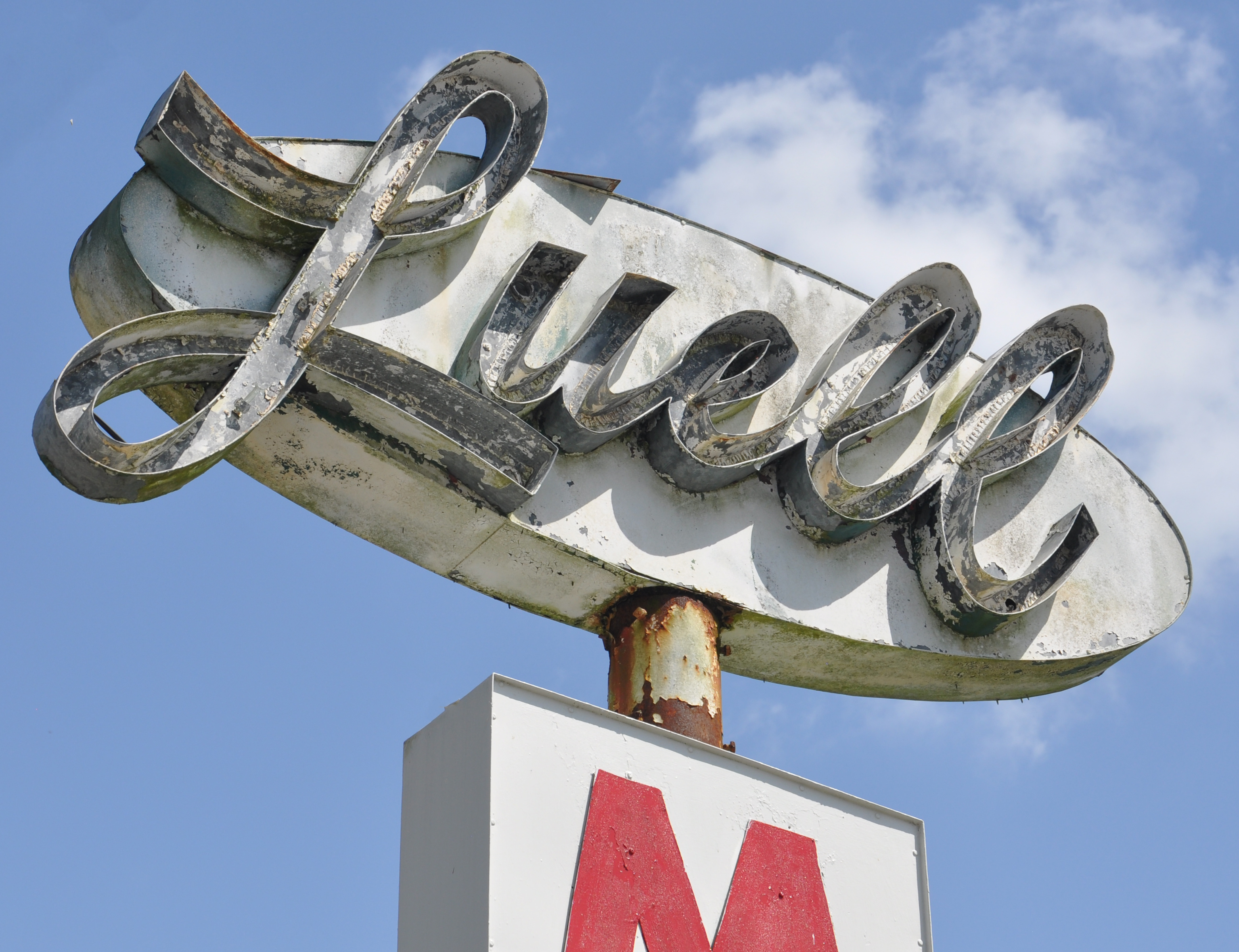 The Luell Motel sign was obviously all neon originally — you can see the tubing holes on the block letters: