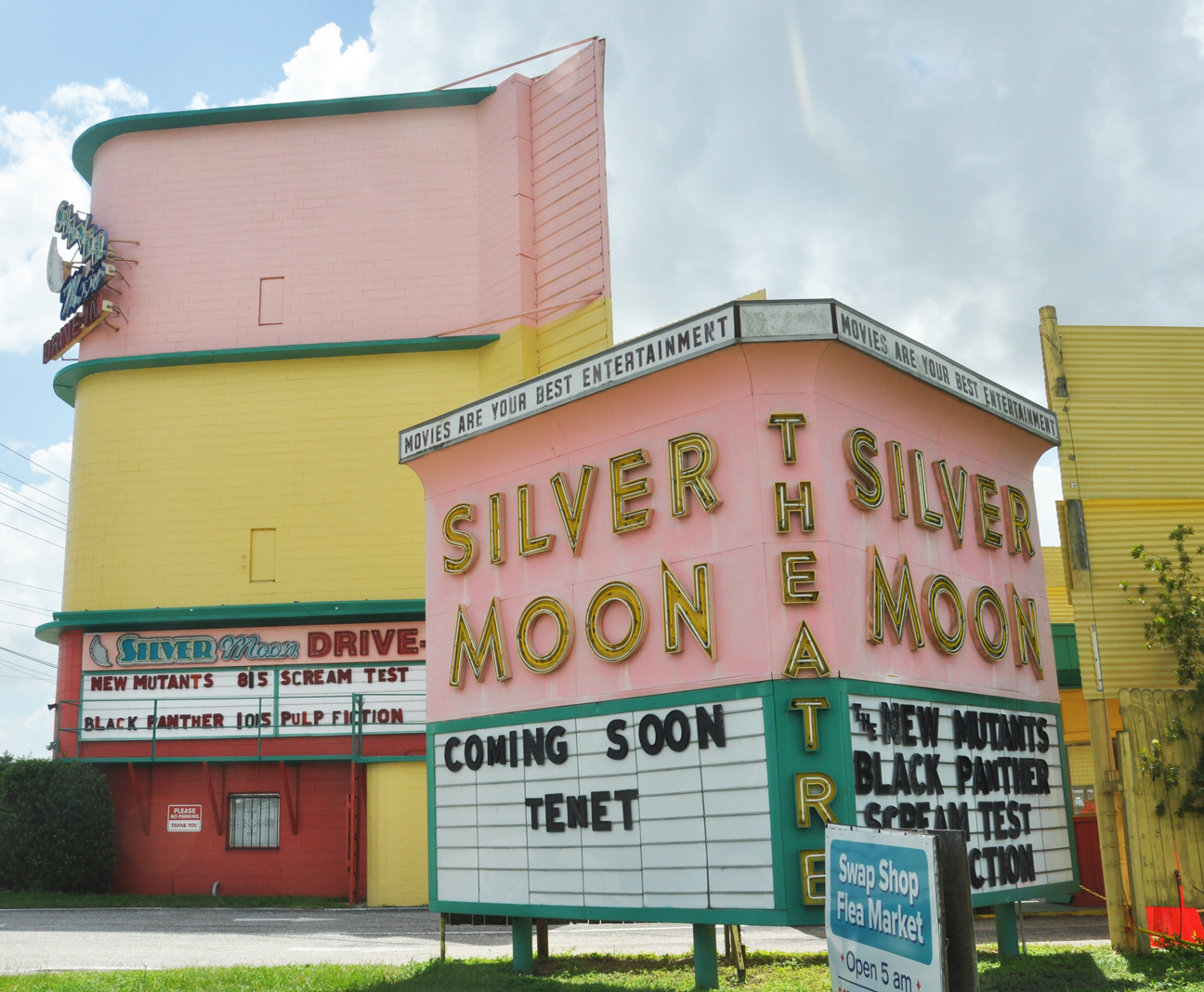 The Silver Moon Drive-in from 1948 — yes! — still operating. The structure on the left is the backside of one of the two screentowers: