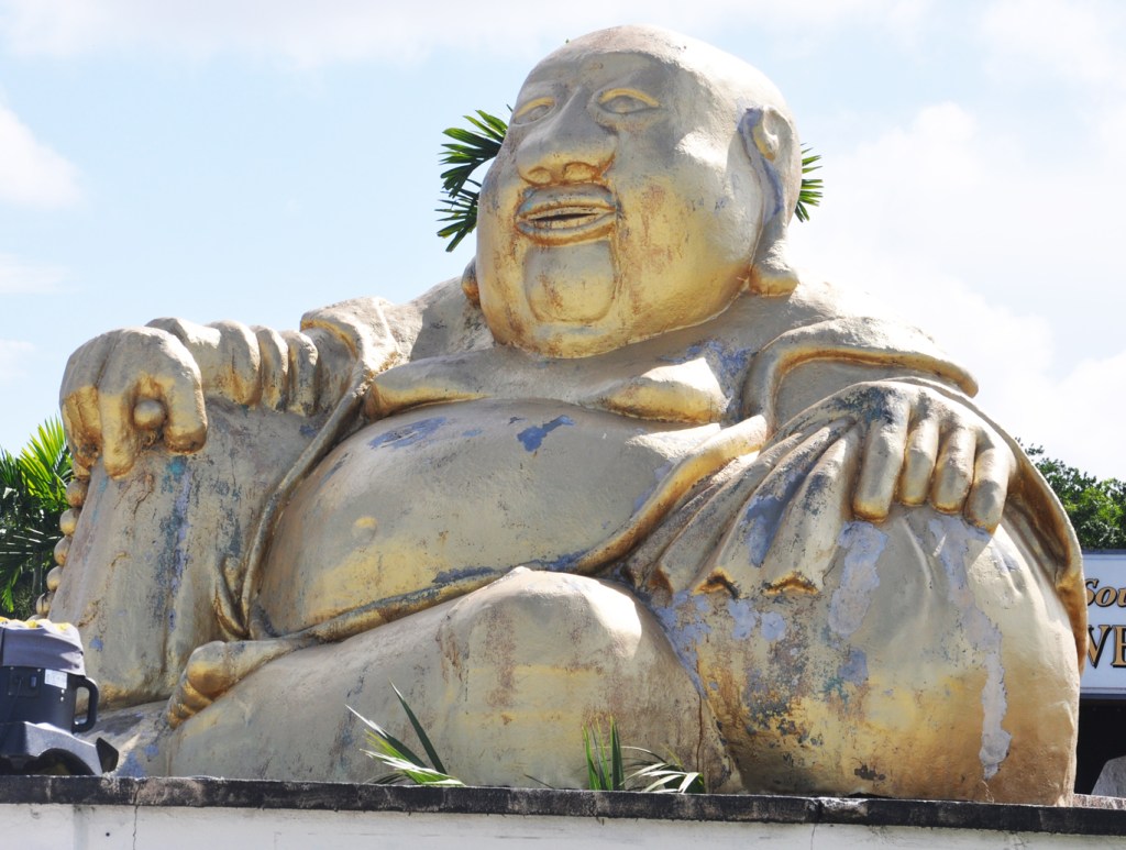 This guy was installed in Fort Myers when the Bamboo Inn opened in 1961. He’s about five feet tall. The business is now a nightclub (“Buddha LIVE”) and, just a few weeks ago, the statue was painted red which has the locals freaked out. The owner will probably give in and paint him gold again soon.