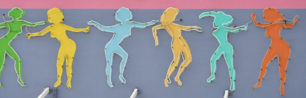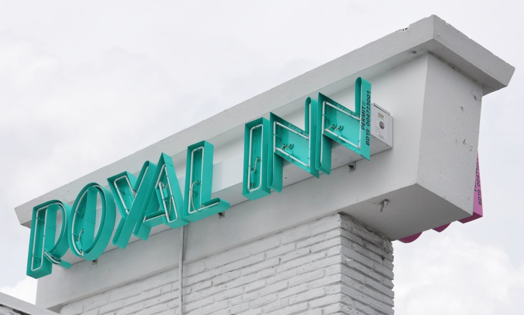 This place was built in 1952 as the Motel Dorsett. It changed names a few times after that. It took on this name last year and these signs were installed (there’s a pink version on the other side):