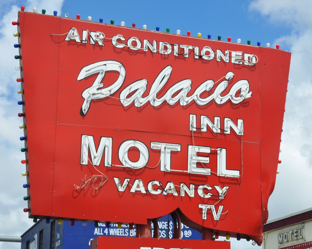 The Palacio Inn Motel was built in 1955 as the Casa-Lu Motel. It later became the Fantasy Inn Motel. And then around 2014 it took on this name and the sign was reworked a third time.