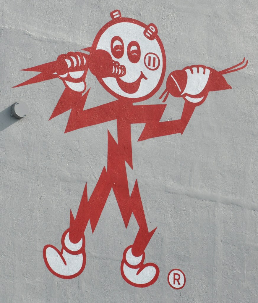 There are no neon Reddy Kilowatt signs in Florida — but this company has two locations with images (this painted sign and a plasticized version). More Reddy signs at my website here: