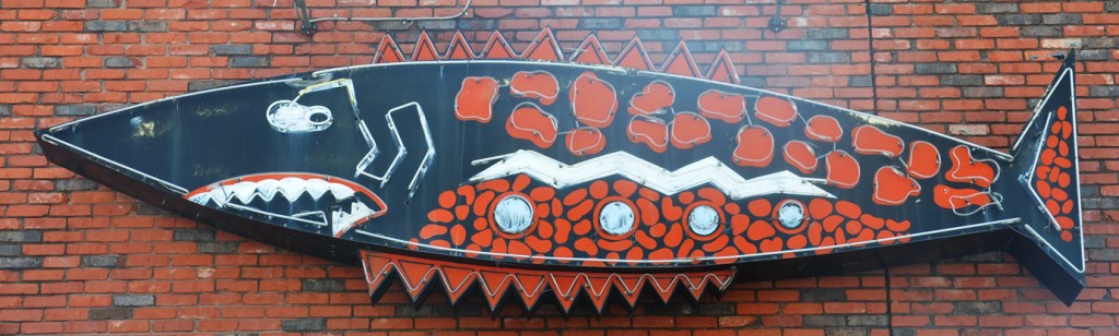 Let’s move on to some Oklahoma stuff. I’ll stick with signs since that’s what most of my blog fans can’t get enough of. Let’s start with a big batch from Oklahoma City. These two below are modern signs. I had the sun in my face/lens, so, I’ll reshoot another time. This evil looking fish is at Pearl’s Crab Town: