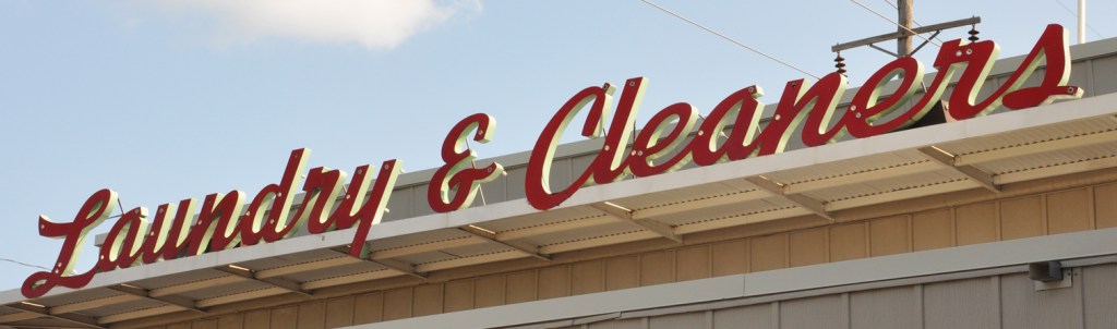 This sign originally advertised for Quality Cleaners & Dry Cleaners: