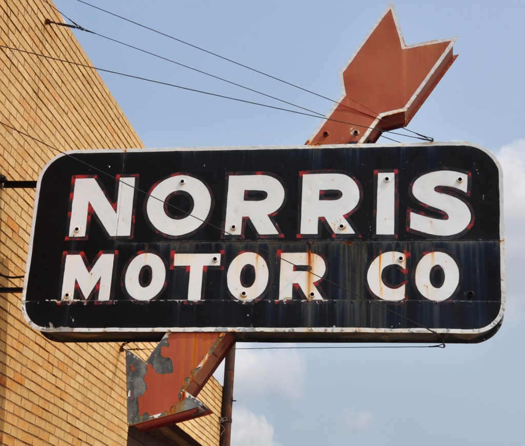 Let’s wrap up this post with some signs from Guthrie, OK. This sign was restored a few years ago, however, the top is already fading: