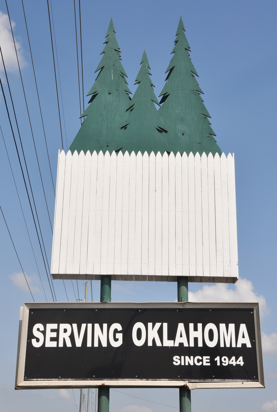 This sign had been repurposed to read “Antique Mall” by 2008. I don’t know what the original wording was or if it came from somewhere else. I have seen a lot of those “doo-hickeys” on top of the sign in Louisiana. I don’t think I’ve seen them anywhere in Oklahoma other than some similar things on top of theatre signs. However, there was never a theatre at this location.
