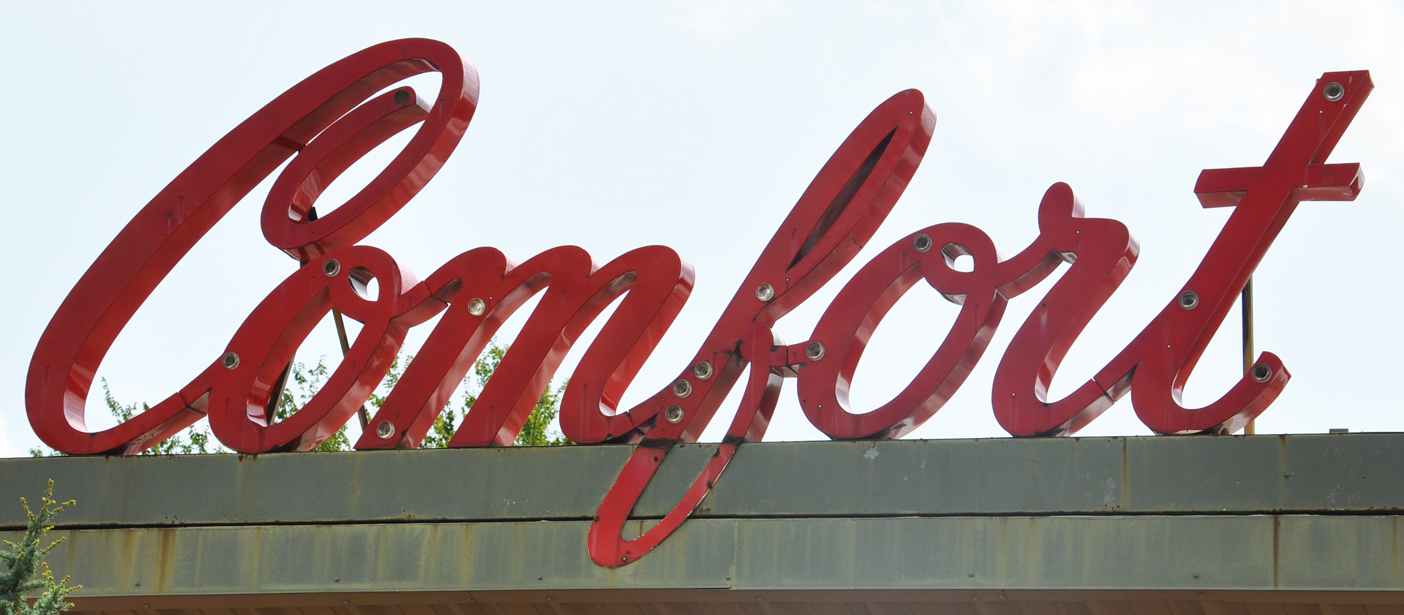 Let’s wrap up this post with some signs from Guthrie, OK. This sign was restored a few years ago, however, the top is already fading: