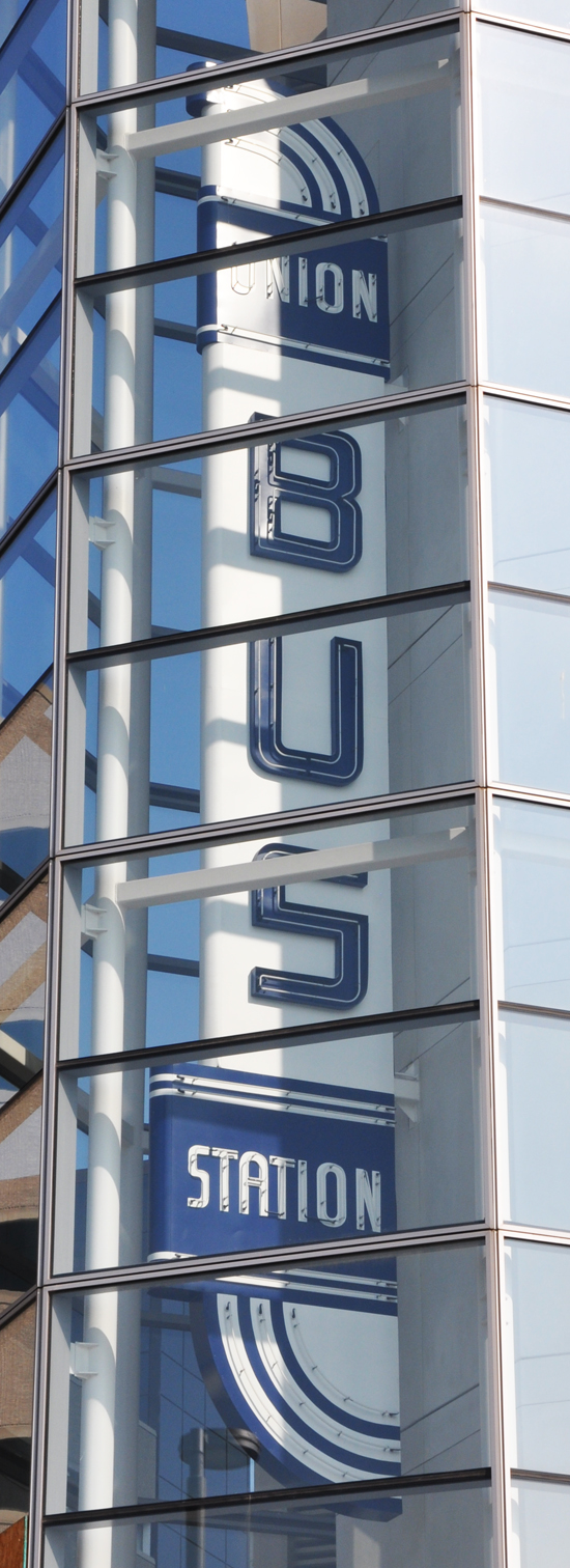 The “entombed” Union Bus station sign. When they demolished the beautiful building and built the new hideous building, they saved the sign and for whatever dumb idea, put it behind glass waaaaay up high. At least they could have had single sheets of glass instead of all those ribs which makes shooting this nice sign with any justice nearly impossible: