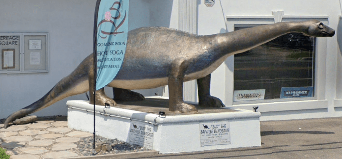 Google Street View has the updated map for the Bayville, NJ dinosaur. Here’s a photo that I took in 2009:
