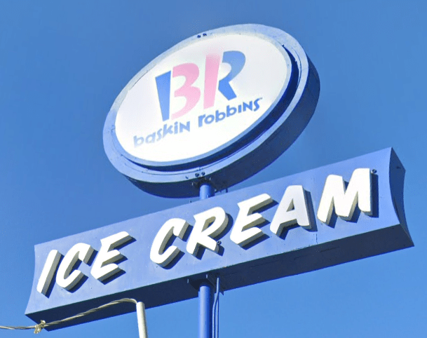 The bulb letters on this Baskin-Robins sign in Los Angeles, CA:
