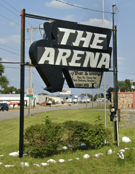 The Rainbo Lanes in Elkhart, IN was renamed The Arena in 2014. Those circles were once bowling balls that were sequentially lit towards the pin: