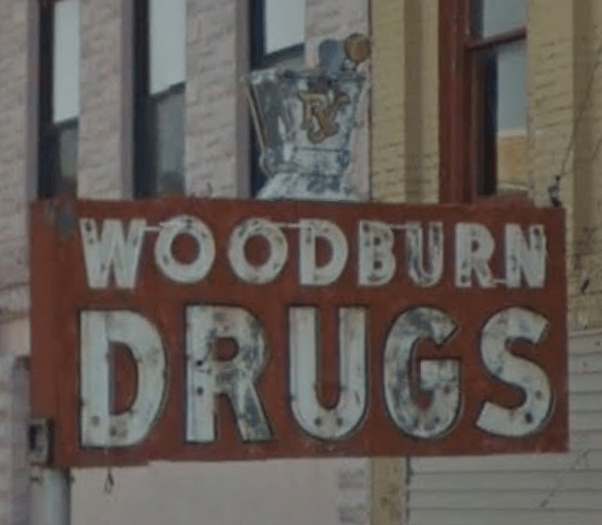 Damn. Another one that I never got to shoot which has been on my list for years. This Woodburg Drugs sign was in Dawson Springs, KY: