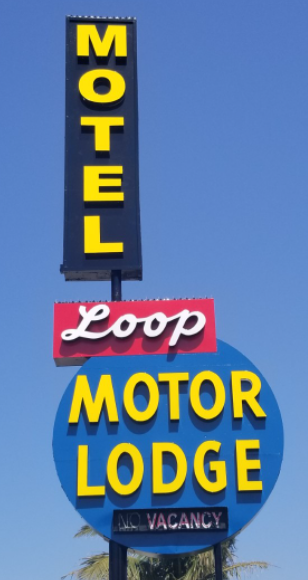 A couple of things out of order that I’ll sneak in here. In my little hometown of Ventura, CA, one of the few neon signs just got scalped. Here’s what it looked like until a few weeks ago (the plastic backlit plastic vertical “Motel” above this was not original):