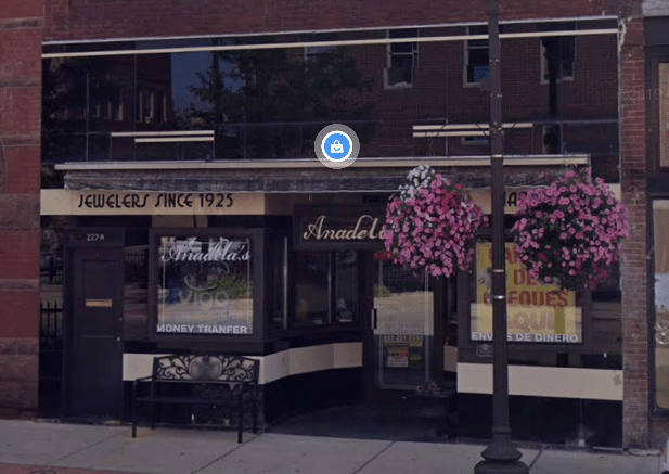 had the gorgeous Art Deco lettering removed for a clothing/gift shop/check cashing place. At least they left the “Jewelers Since 1925” in place: