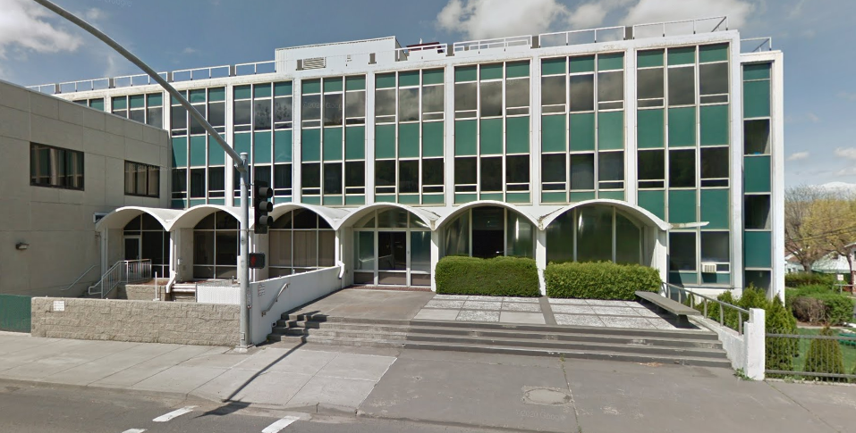 I never got to shoot this one. The new 2019 Google Street View map shows an empty lot where this 1962 addition to the St. Anthony Hospital in Pendleton, OR was: