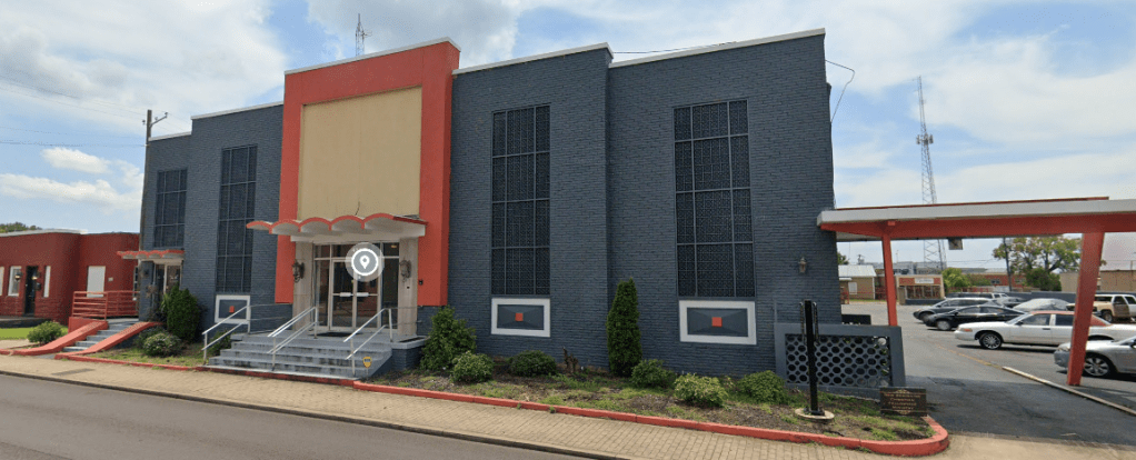 A heavy-handed paint job occurred recently when this building began housing Jackson’s Empowerment & Enrichment Complex. However, I’m glad the canopies, screens, and the rest are still there. Wait, the screen over the entrance is gone. Why, oh why, is dark grey so popular now?: