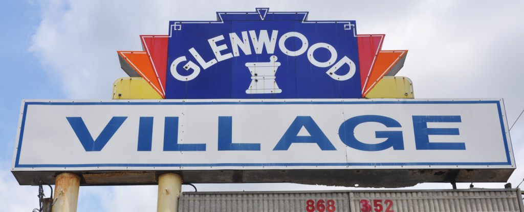 This one in Shreveport originally advertising for Glenwood Drug Store. Around 2008, the sign’s neon was removed and the Village Panel slapped over the Drug Store panel: