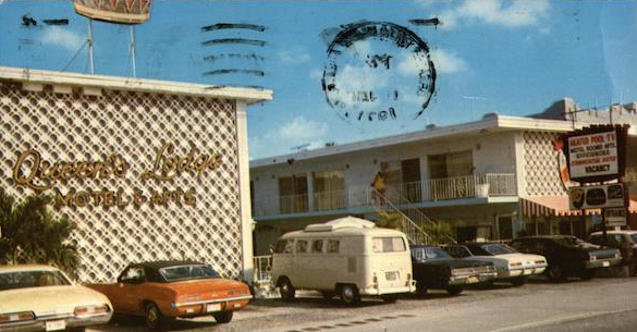 This motel in West Palm Beach had been built by 1961 (the postcard postmark below) and this sign was there then: