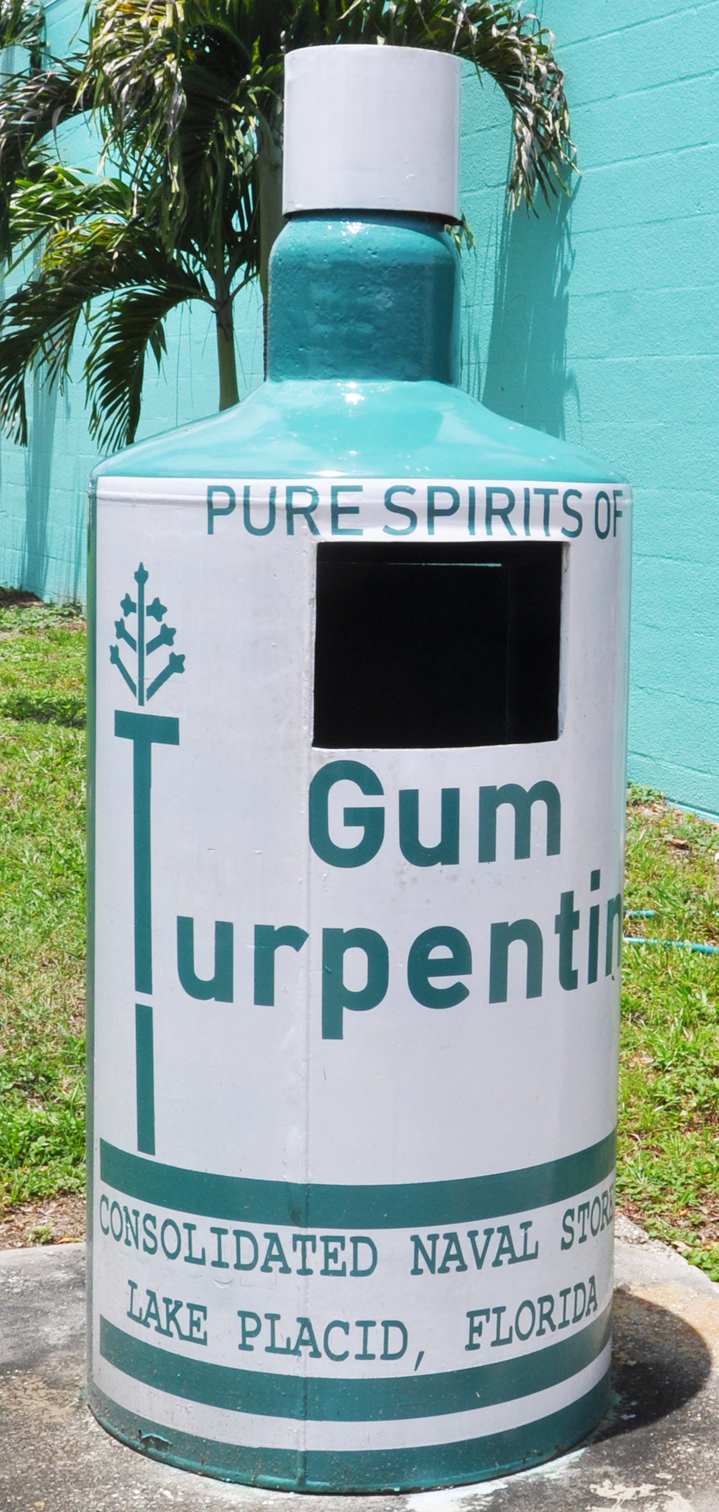 This trash can was installed by 2008. The turpentine industry has played an important role in the history of Lake Placid: