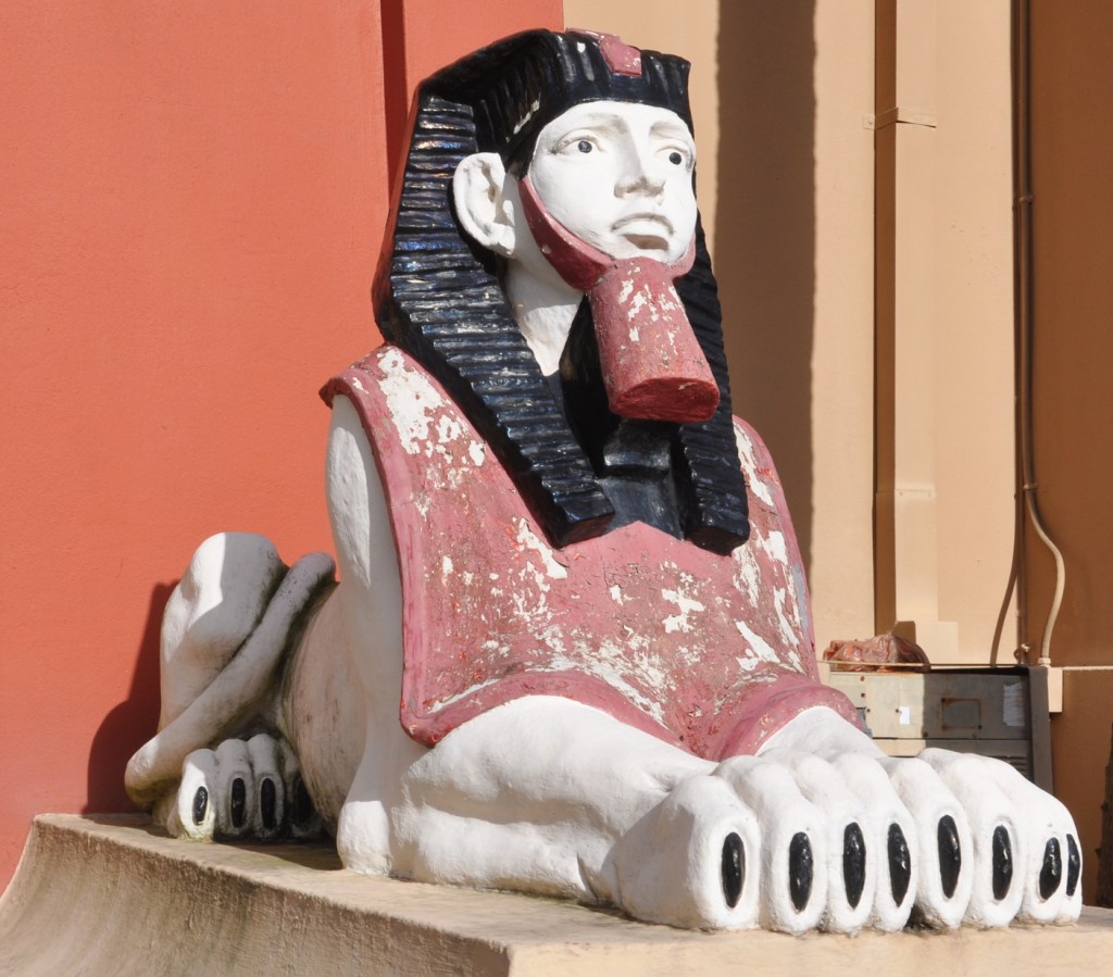 The Morocco Temple in Jacksonville was built from 1910-1911. The building is now used for office space but the Egyptian Revival building and these Sphinx statues which flank the entrance remain: