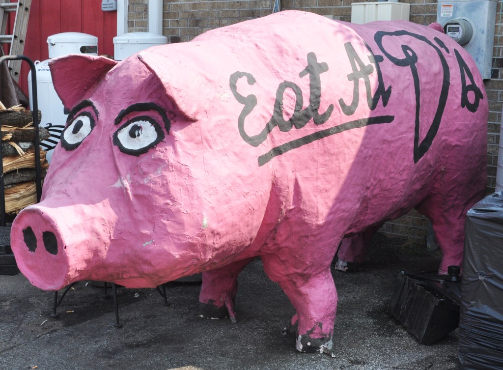 Big D’s BBQ is located in Dawsonville. This guy was on the roof for years. I guess they decided to retire him. I found him behind the building. I was relieved to see him but I am worried about him: