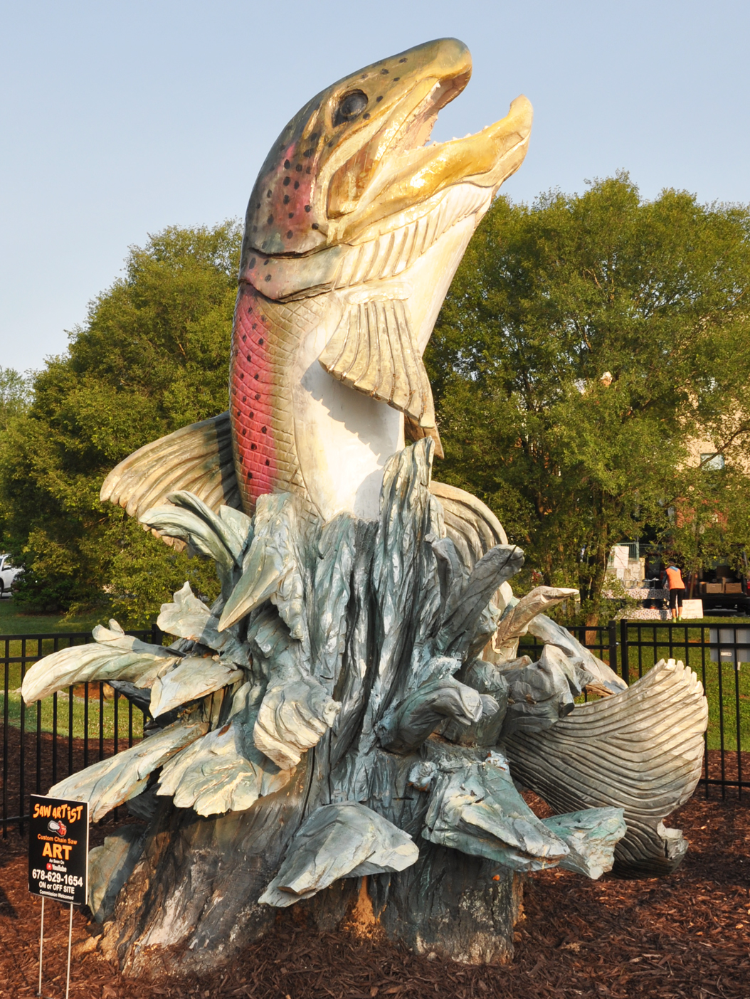 Blue Ridge is considered the trout fishing capital of Georgia. When a tree died in the downtown park, the City hired a chainsaw guy to carve, what else, a jumping rainbow trout: