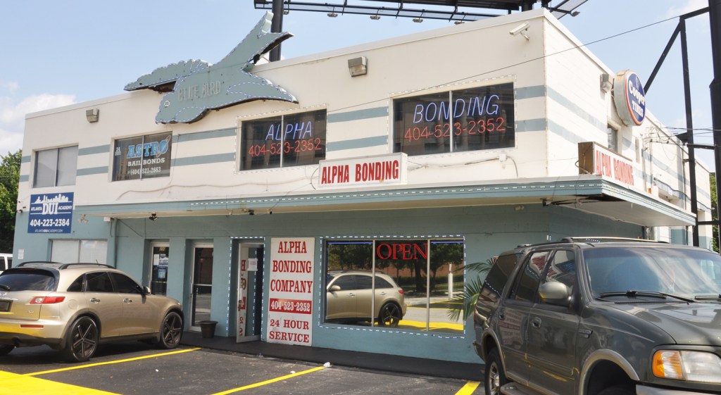 The Blue Bird Service Center in Atlanta was built in 1939. There were three giant bluebird signs then: one on the front of the building and two on the roof with two triangulated panels reading “Truck Stop” from the backside. Nick Fisher shot it in 1990 – https://www.flickr.com/photos/10386678@N02/955798540
