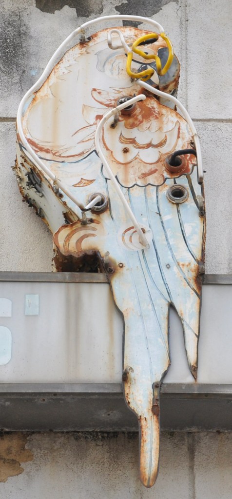 Today, at least the script sign and the parrot below are still there. The store has been closed since around 2019. I doubt that these signs are protected, although they really should be. I’d love to think that they would be carefully repainted and lit again. Here’s hoping…