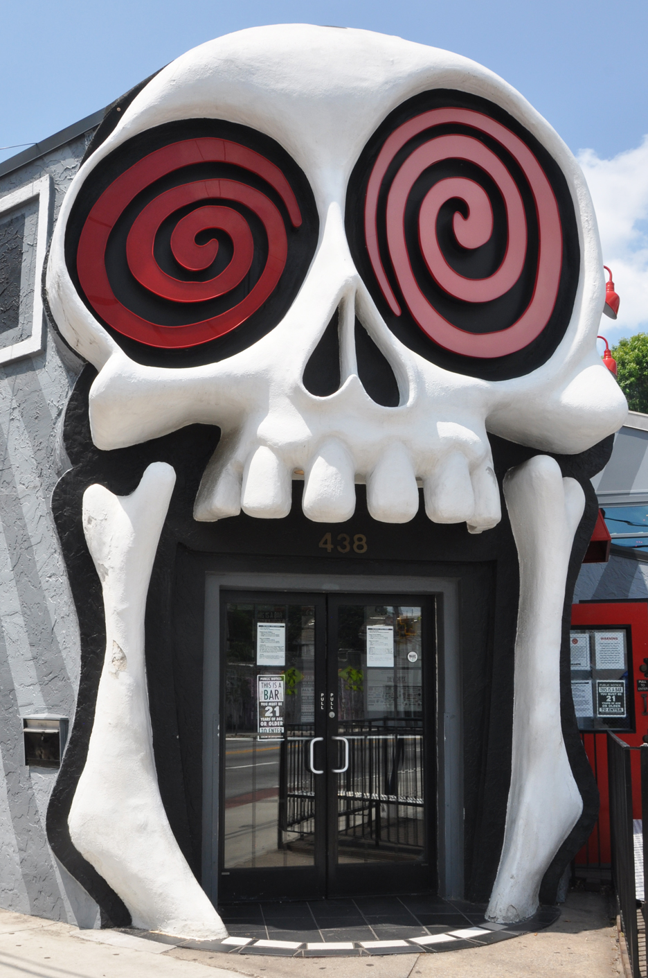 Last photo for this post. The Vortex Bar & Grill in Atlanta opened in 1996 with this skull entrance. The eyes are lit red at night.