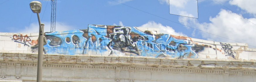 Well, sometime in the last couple of years, some freaking taggers got on the roof and did this. I sure hope it gets repainted: