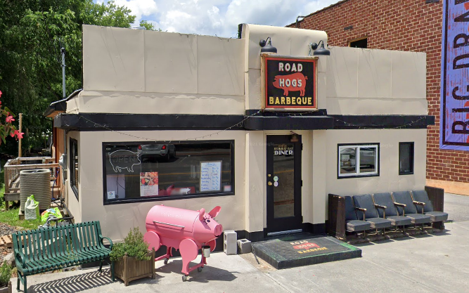 It closed around 2016 and was vacant for many years. I feared the worst. But no! In 2019, it reopened as Road Hog’s Barbeque. They’ve added a big dining area behind the diner. I think the interior’s eight stools and original metal cabinets are gone :