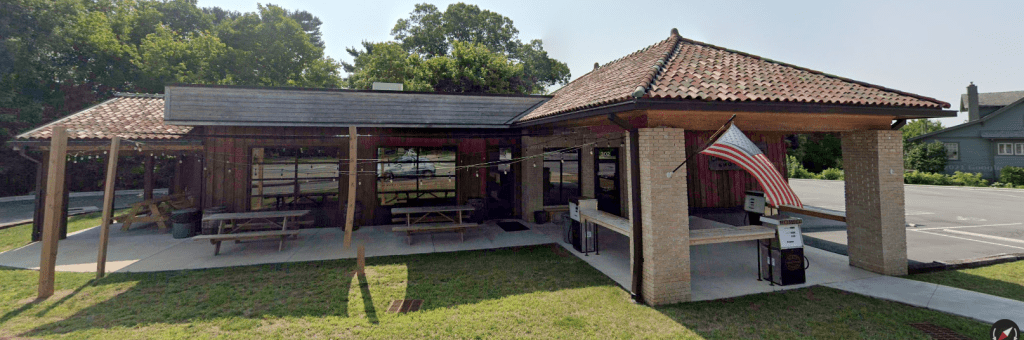 The long-vacant station in Jamestown, NC was adapted for a restaurant around 2020 and an addition was added to the left side. It now houses the Black Powder Smokehouse: