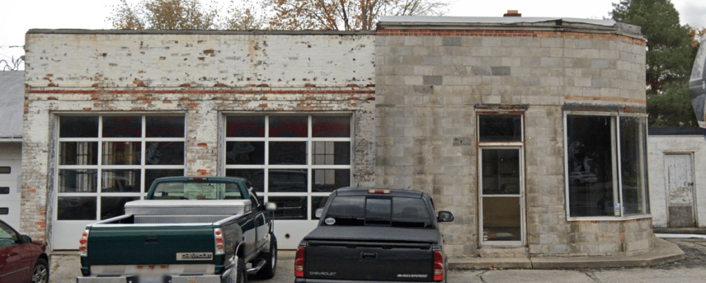 That identifies it as a former Standard Oil station like this one in Brooklyn IA: