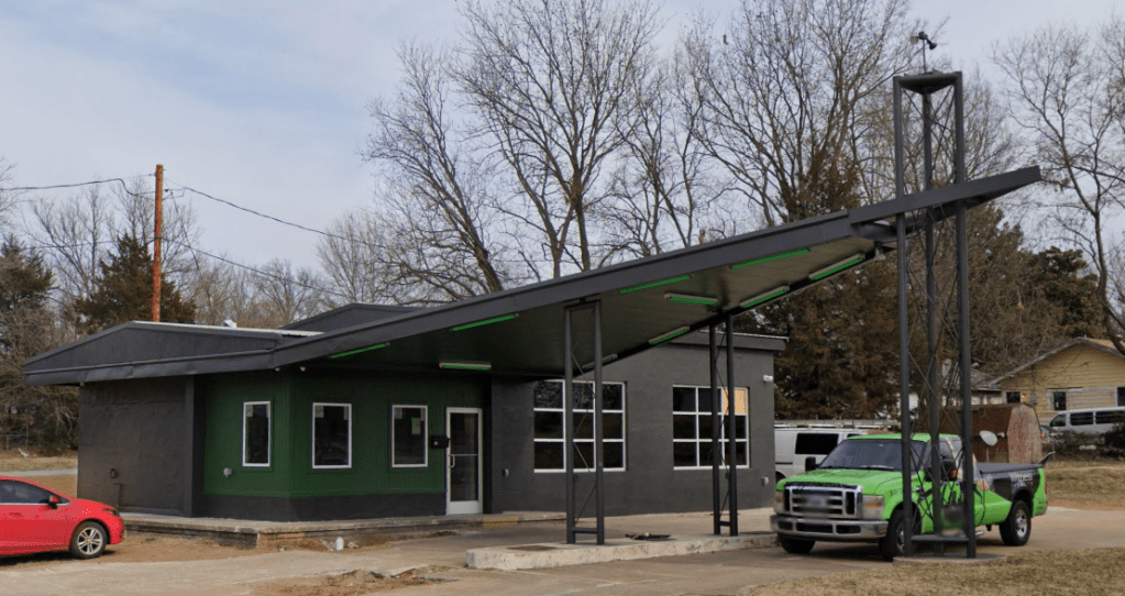 Several other long-vacant gas stations in Oklahoma have been recently repurposed as cannabis shops. Here’s a former Phillips 66 from Bristow, OK: