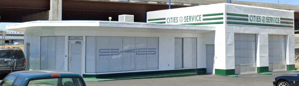 This former Cities Service station in Tulsa, OK was restored in 2010. Last year, LED tubing was added to the letters on the building: