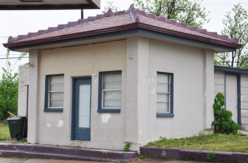 This former station in Cedar Rapids, IA housed a hair salon for many years. When the sign was removed recently, it revealed the Art Deco “oil products” letters: