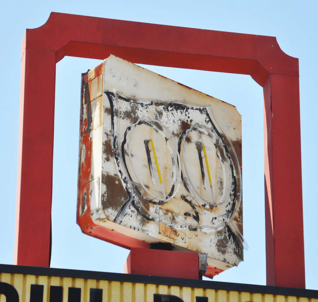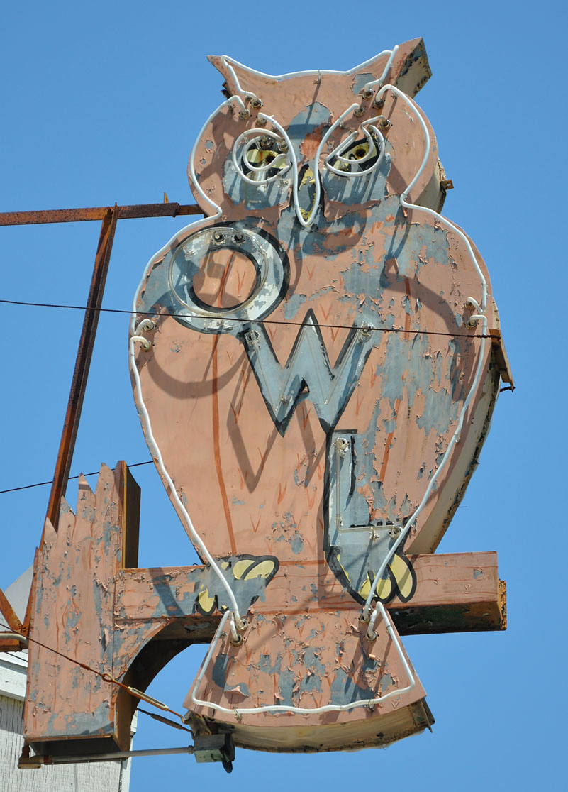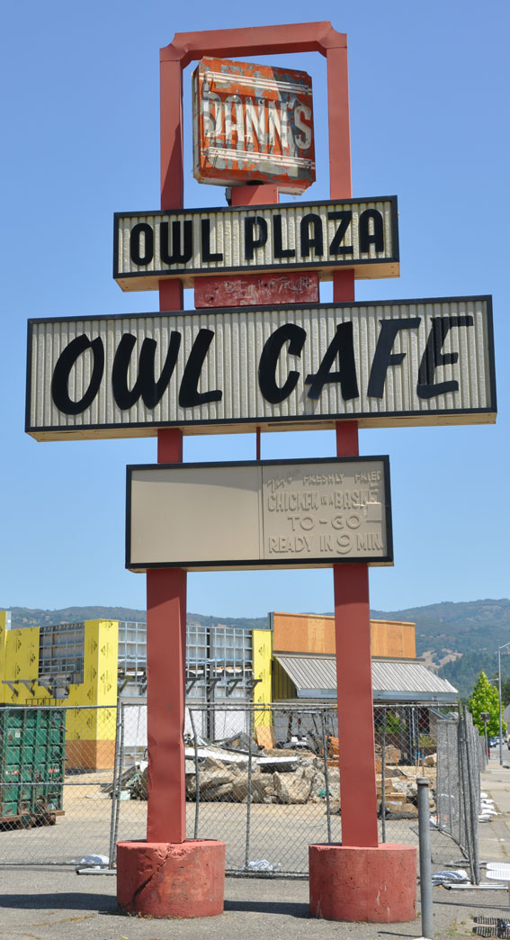Good news/bad news, I guess. The Owl Cafe in Cloverdale, CA is now El Milagro Mexican restaurant but the owl sign is still there: